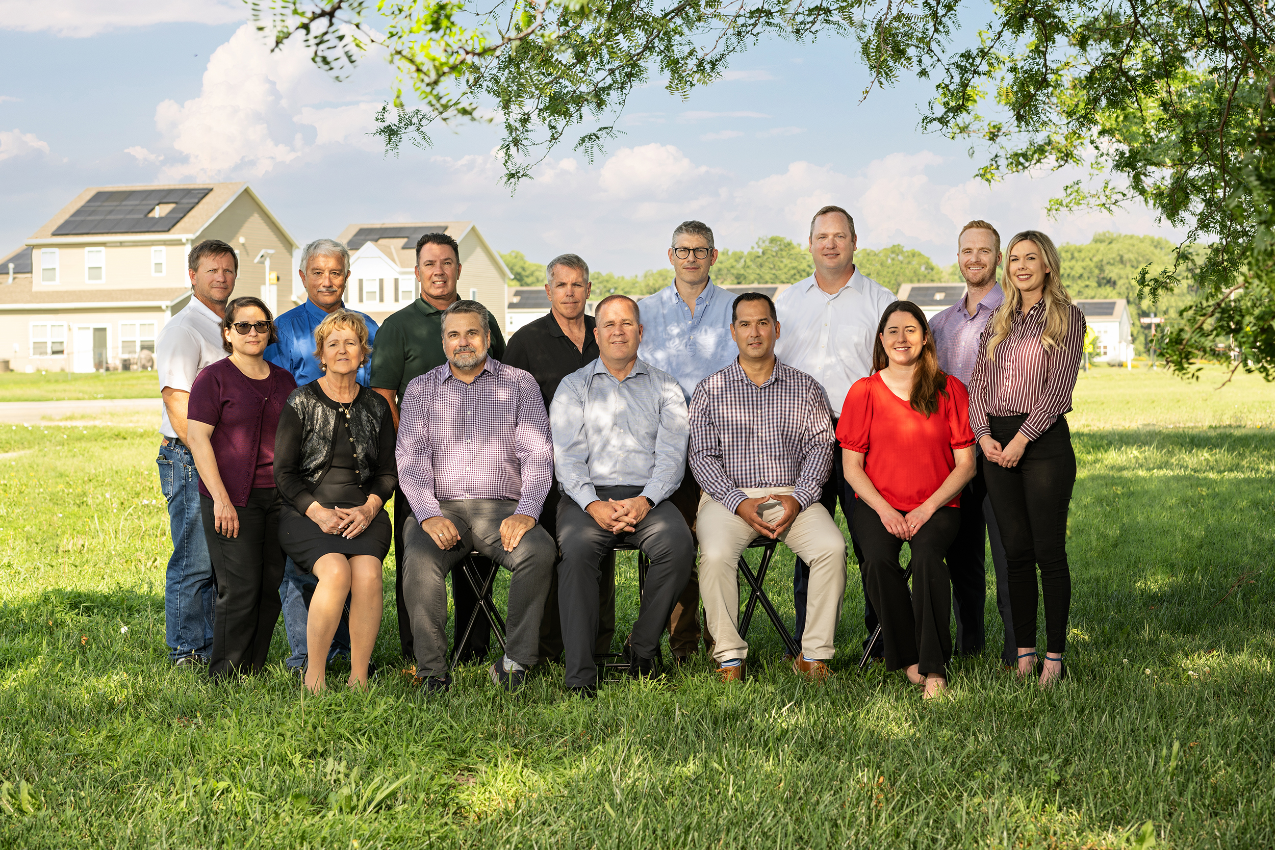 Pictured from left to right, standing: Theresa de la Garza, Historic Architect & Cultural Resources Manager, U.S. Army; Chris Hartnett, Field Engineer, City Light & Power; Don Wainwright, Utilities Manager, City Light & Power; Steve Milton, Chief, Army Housing, U.S. Army; Jeff Williamson, Director, Directorate of Public Works, U.S. Army; Brenton Giles, Archeologist, U.S. Army; Dan Swayze, Chief Operating Officer, Onyx Renewable Partners L.P.; Kevin Cox, Vice President, Business & Project Development, Onyx Renewable Partners L.P.; and Kolby Stobbe, RVP, Property Operations, Corvias. Pictured from left to right, sitting: Tana Lee Higginbotham, Operations Director, Corvias; Peter Therrell, SVP, Asset Management, Corvias; Pete Sims, Managing Director, DoD, Corvias; Pablo Varela, SVP, Renewable Energy & Utilities Management, Corvias; and Beth Worthley, Renewable Energy & Utilities, Corvias.